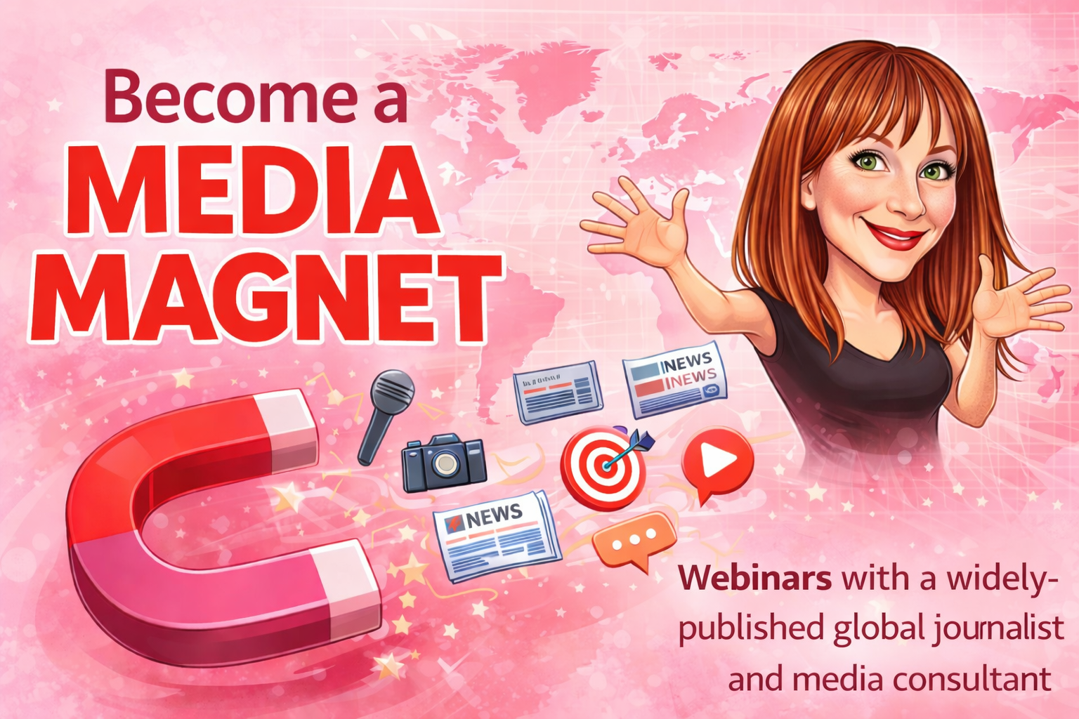 Become a Media Magnet. Webinars and workshops with a widely-published global journalist! For PRs and media professionals, newbies or experienced, but for any one interested really.